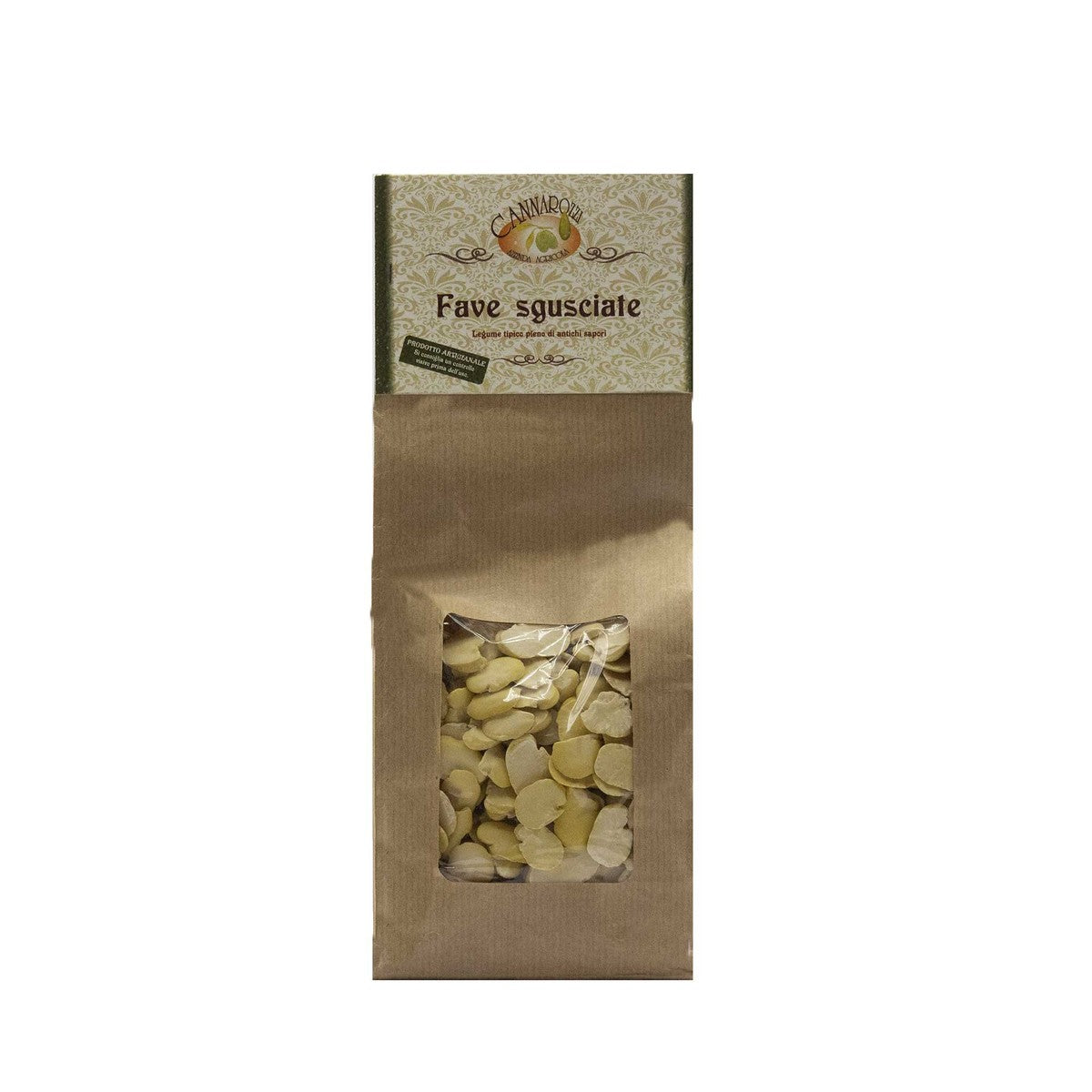 Prodotte da fave di Carpino sgusciate coltivate dall’Azienda Agricola Cannarozzi Michele nei propri terreni a Carpino (Gargano).