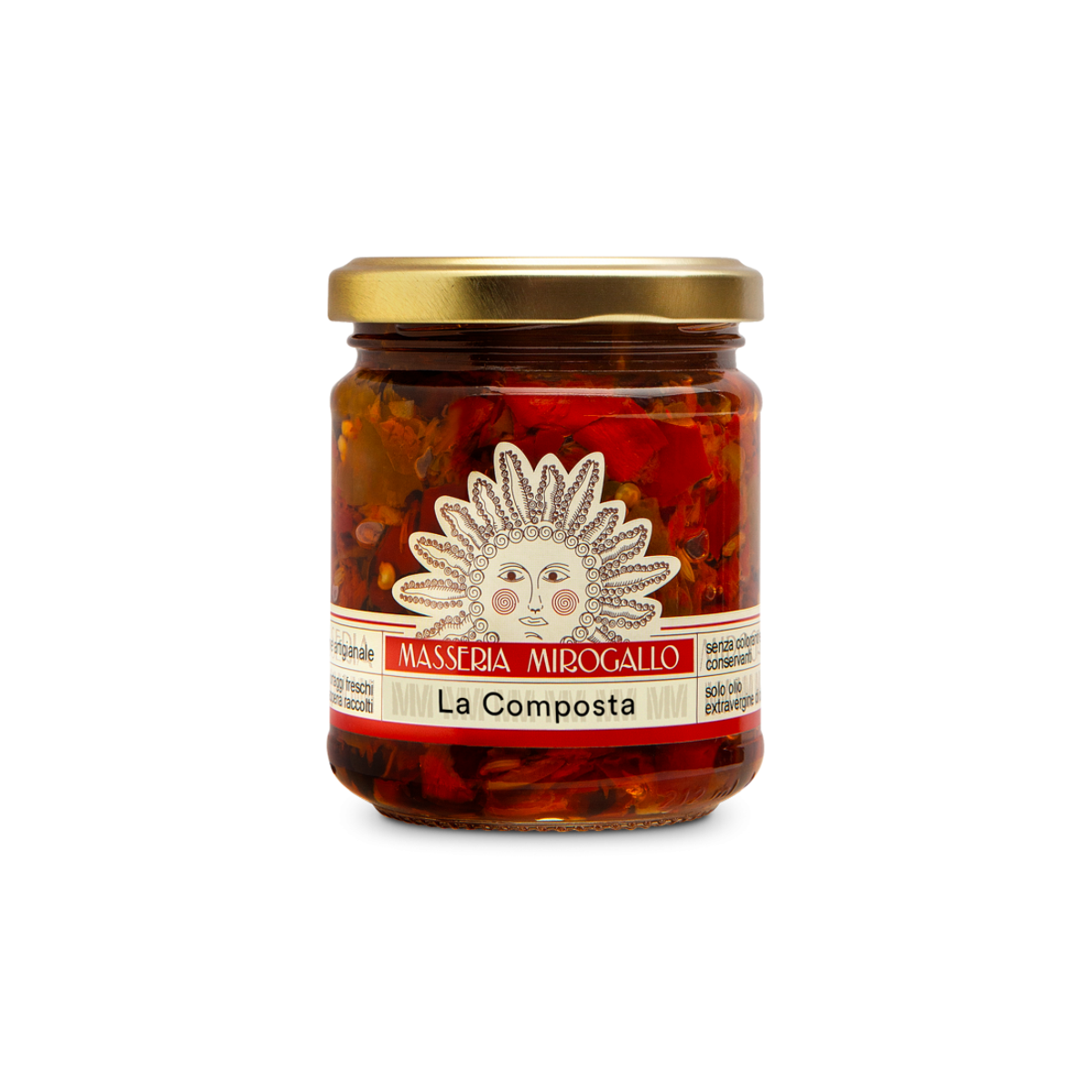 È una conserva artigianale e raffinata, ottenuta dalla lavorazione di peperoni freschi di alta qualità.